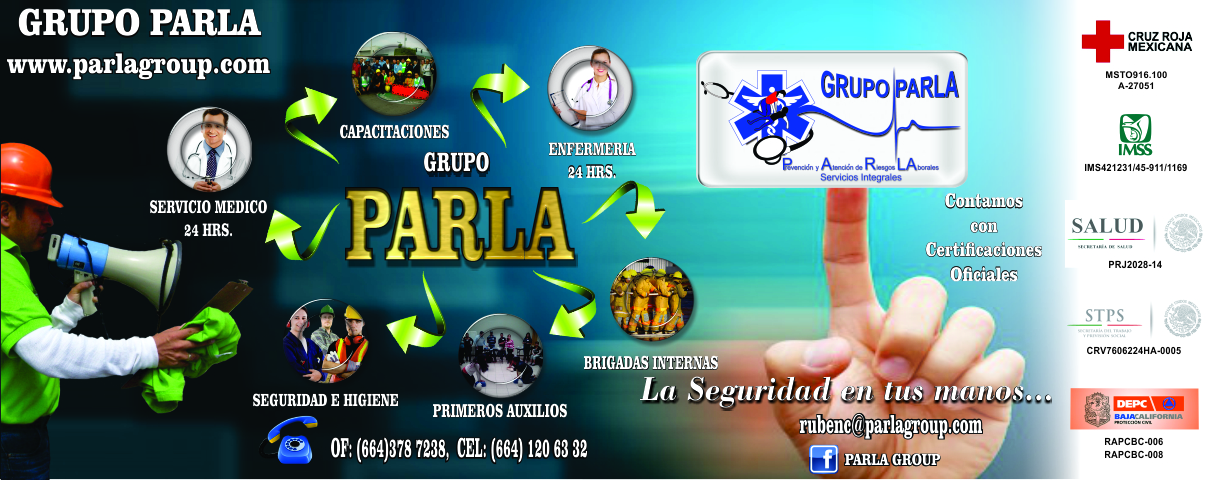 GRUPO PARLA, representado Ruben Cedano Velázquez, con domicilio en Privada Barbados 23611 villa de Sol en Tijuana B.C. C.P. 22205